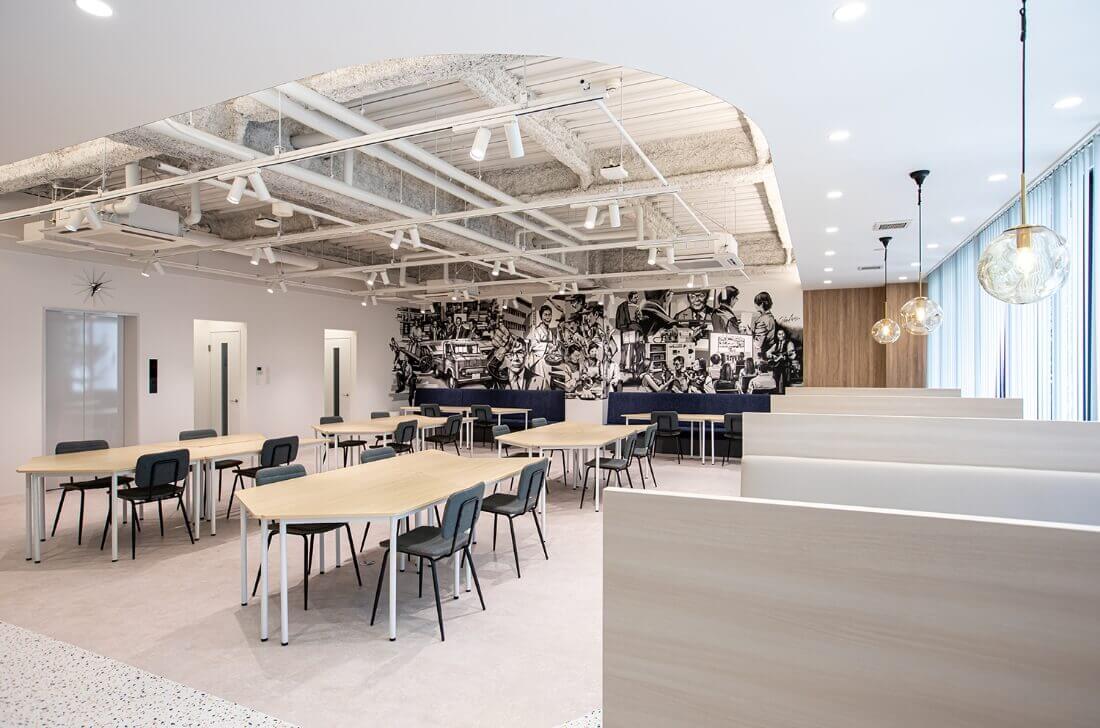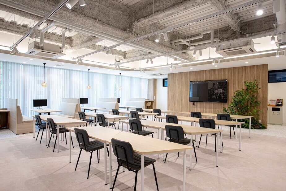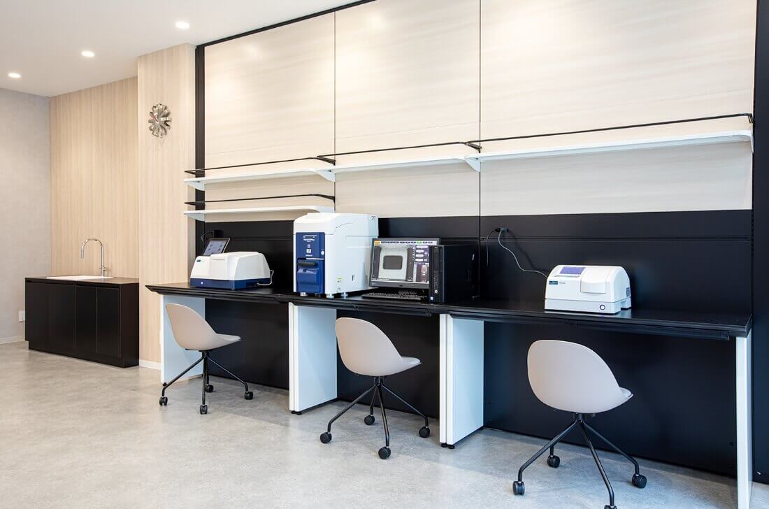 オザワ科学本社の1階、エントランス横のスペースはラボとなっており、さまざまな用途でご活用いただけます。